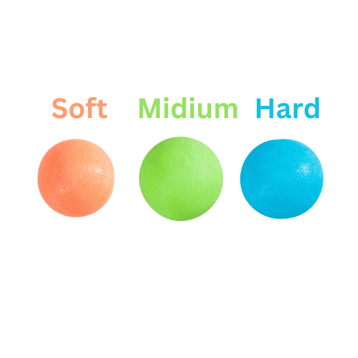 INCLUDES 3 THERAPY BALLS: This set comes with three therapy balls offering different resistance levels: soft (RED), medium (GREEN), and firm (BLUE), each with a diameter of 2.25 inches. Choose the ideal resistance level to suit your needs.